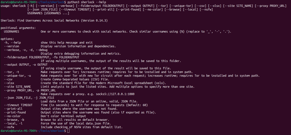 A rather simple tool to use. If you find usernames of your target that they have used on other sites like instagram or facebook, input them on sherlock and could find a whole lot more OSINT information.