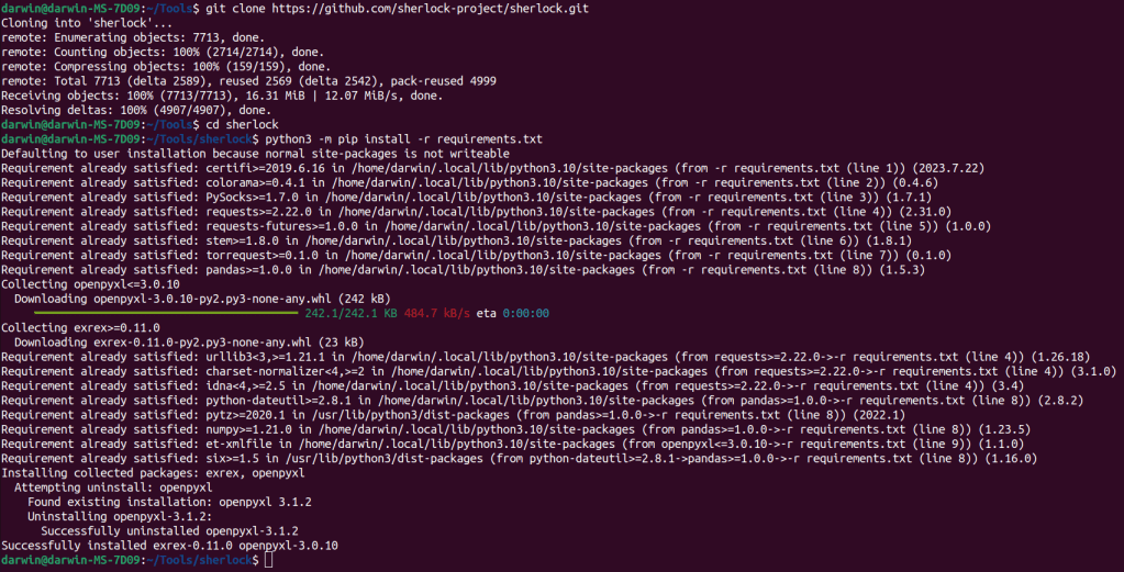 $ git clone https://github.com/sherlock-project/sherlock.git
