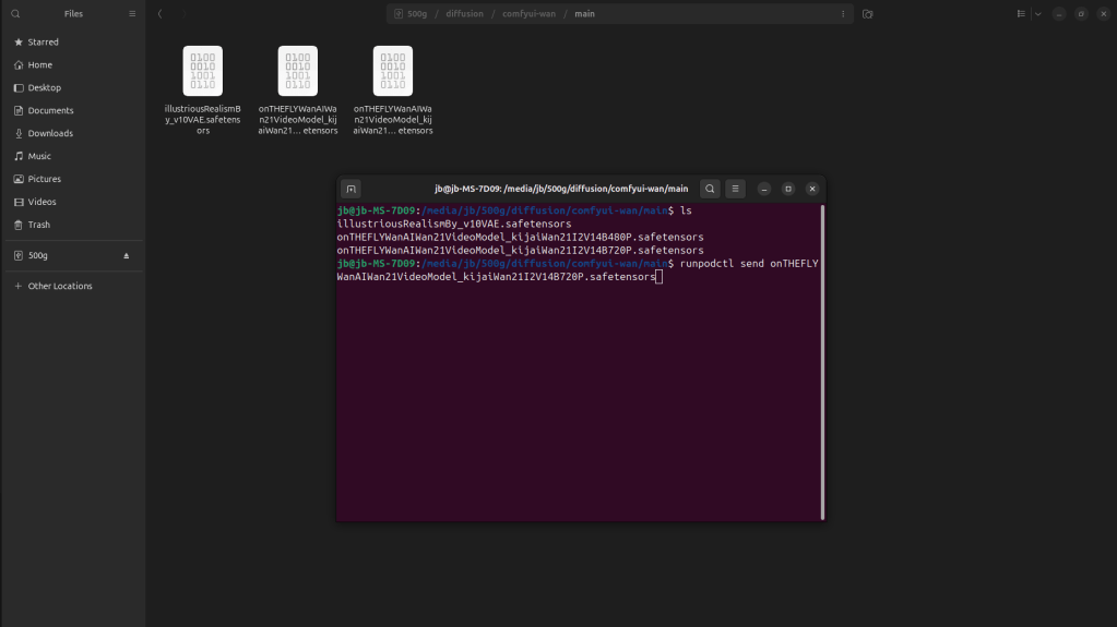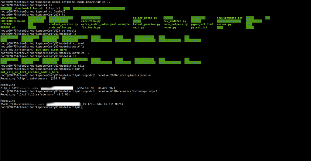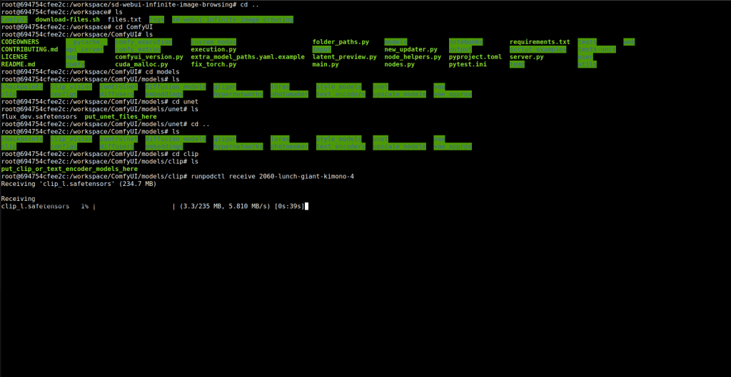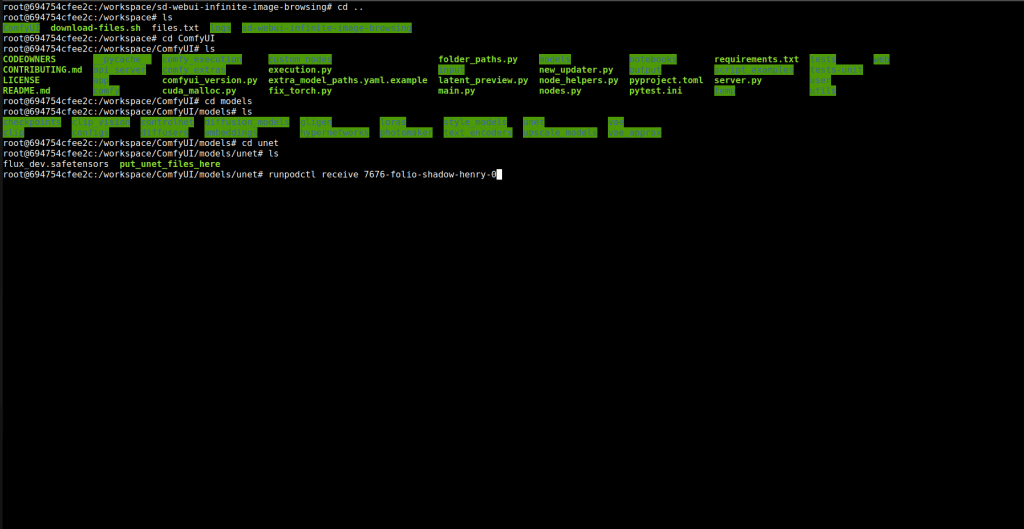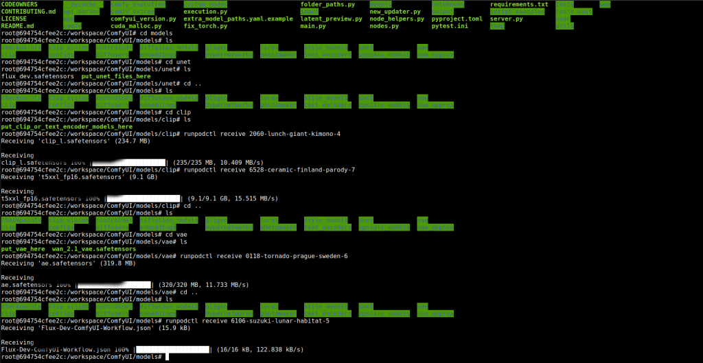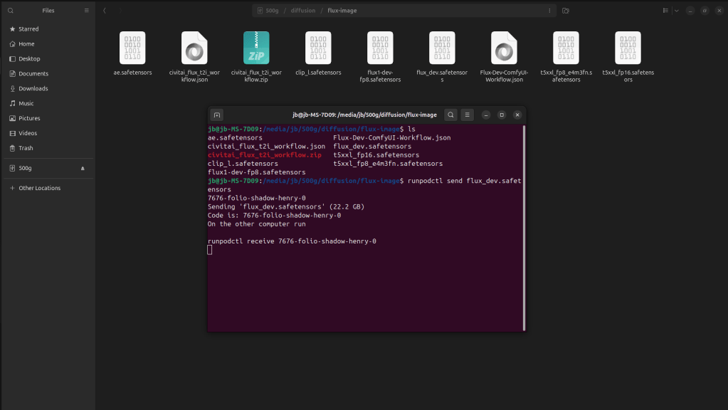Then send flux_dev over from your computer. Copy command and place on the pod side.