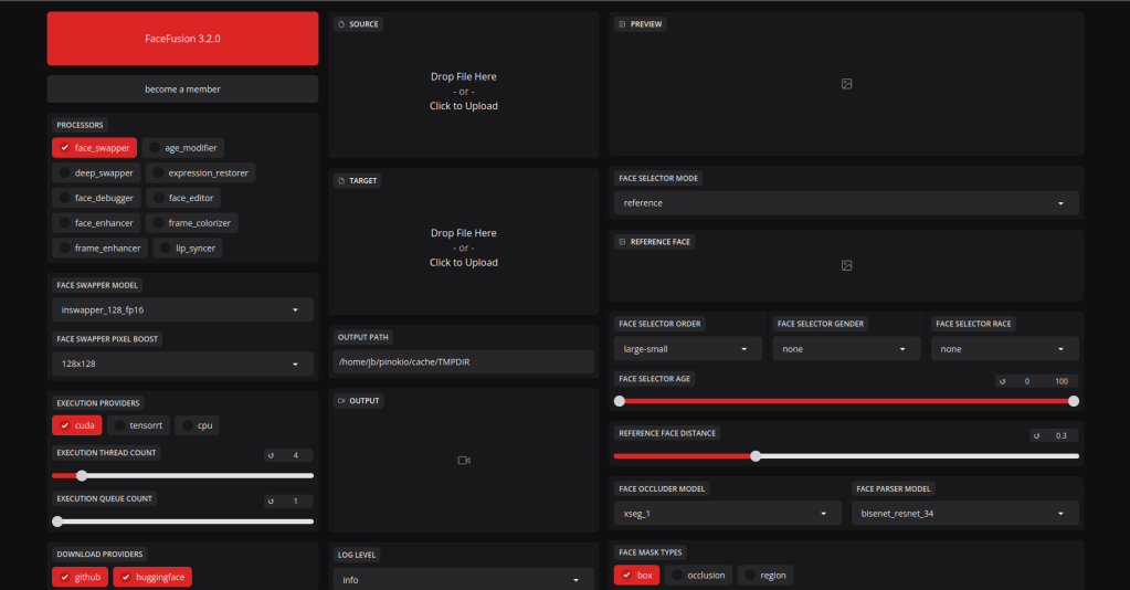 Now before you start the program if you want to be able deal with NSFW pictures then you have to add a file to a folder. download the files from: https://github.com/shambrain/FaceFusion-3-NSFW-Fix. Take one of the files out of the folder and switch it with with the same named file in C:\pinokio\api\facefusionpinokio.git\facefusion\facefusion\. In linux it’s the same.