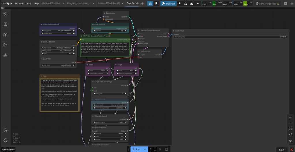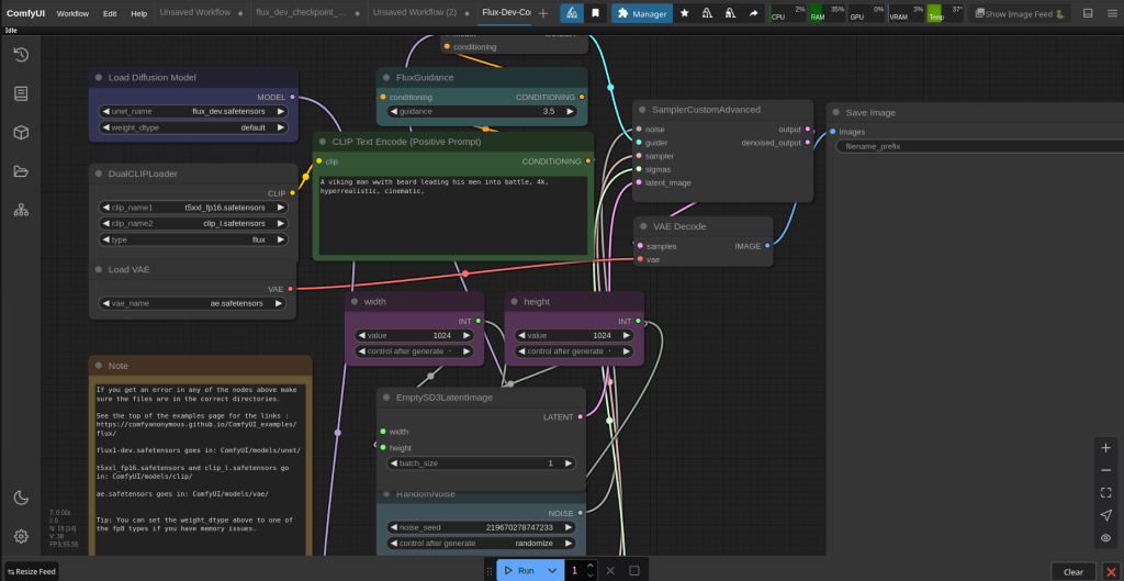 It should look like this. In the load diffusion model box click along until you find flux_dev.safetensors. This will be our one, the default one has a 1 in it.