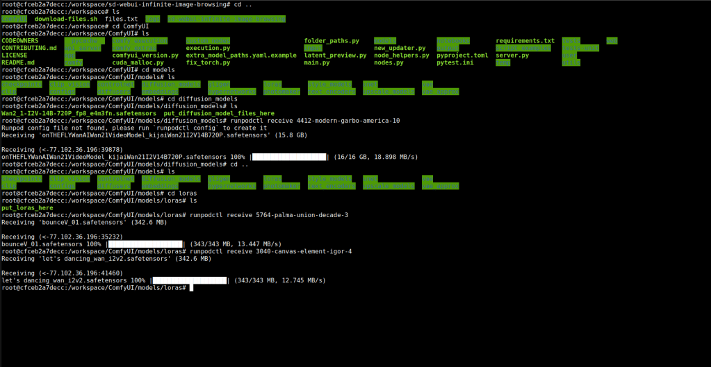 Uploading the loras and main model is the same as in flux above and in my youtube videos, via runpodctl.