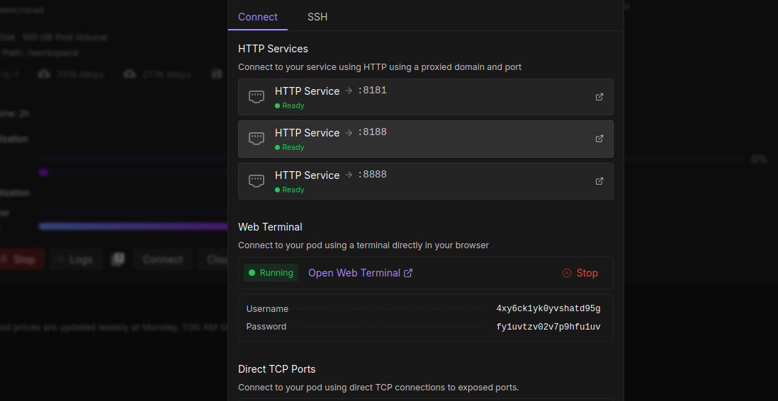 It should look like this when complete. Then go to connect > under web terminal, click start > open web terminal.