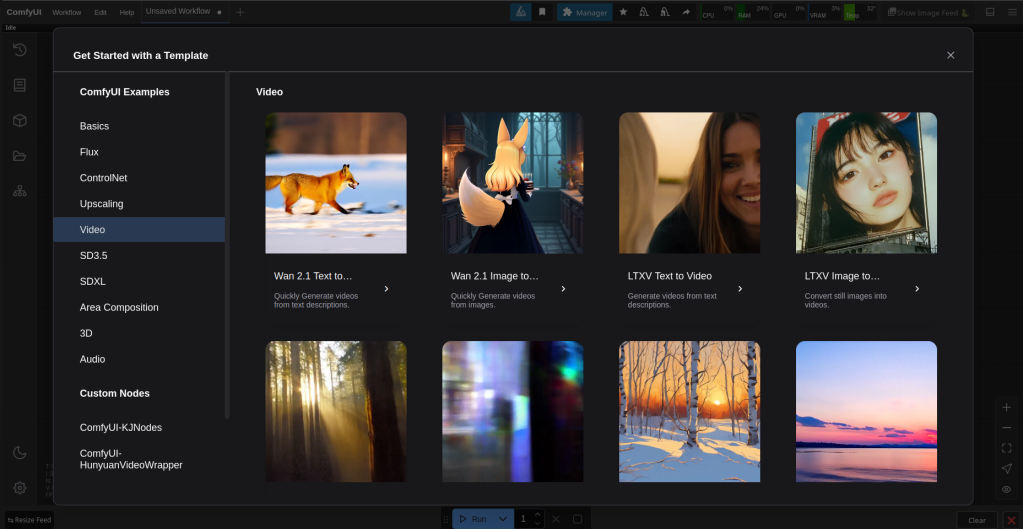 Then we come to this screen again. This time go down and click on video then on wan 2.1 image to video.